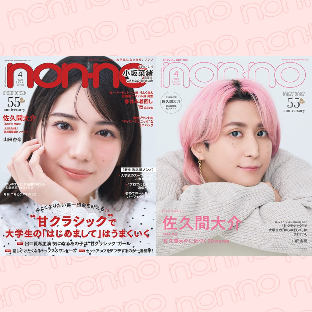 日向坂46小坂菜緒、Snow Man佐久間大介が登場。ノンノ4月号の表紙を本日解禁!