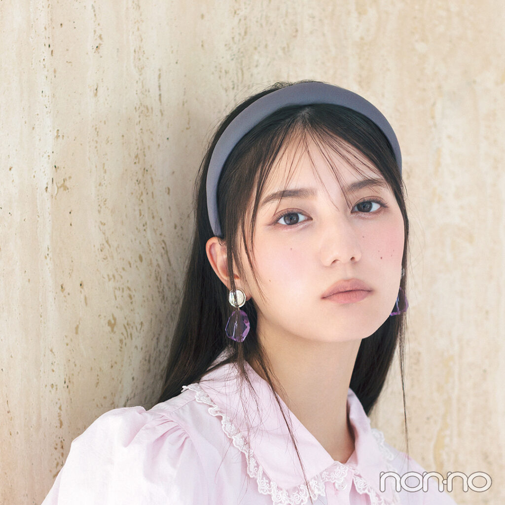 日向坂46小坂菜緒×サテンカチューシャ。大人可愛いカチューシャの付け方
