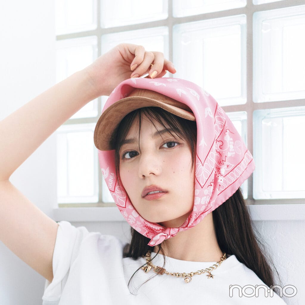 【日向坂46小坂菜緒の秋のヘアアクセサリー】「キャップ×スカーフ」コーデ