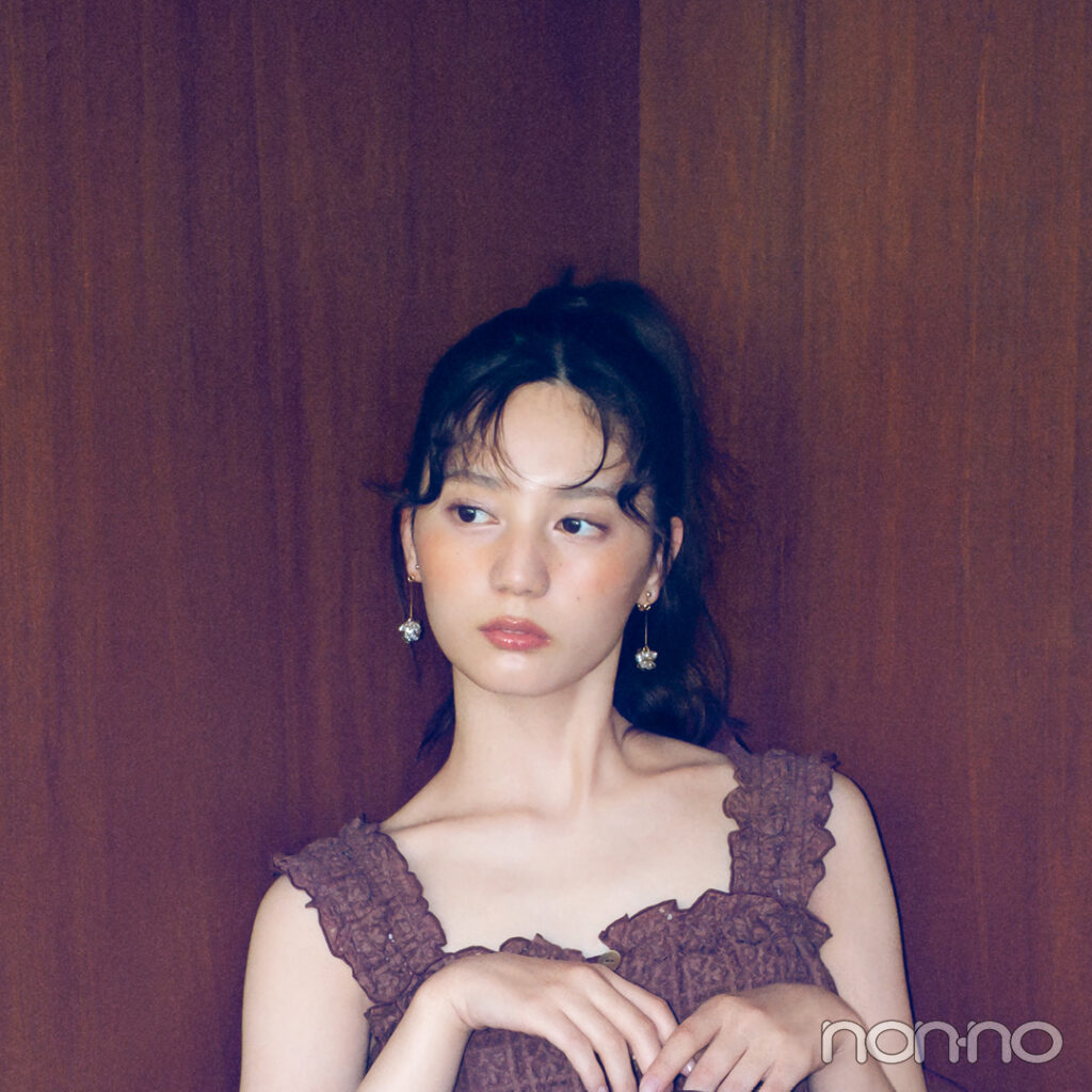 日向坂46・小坂菜緒のサマーブラウンコーデ。フリルやレースも茶色なら洗練された印象へ