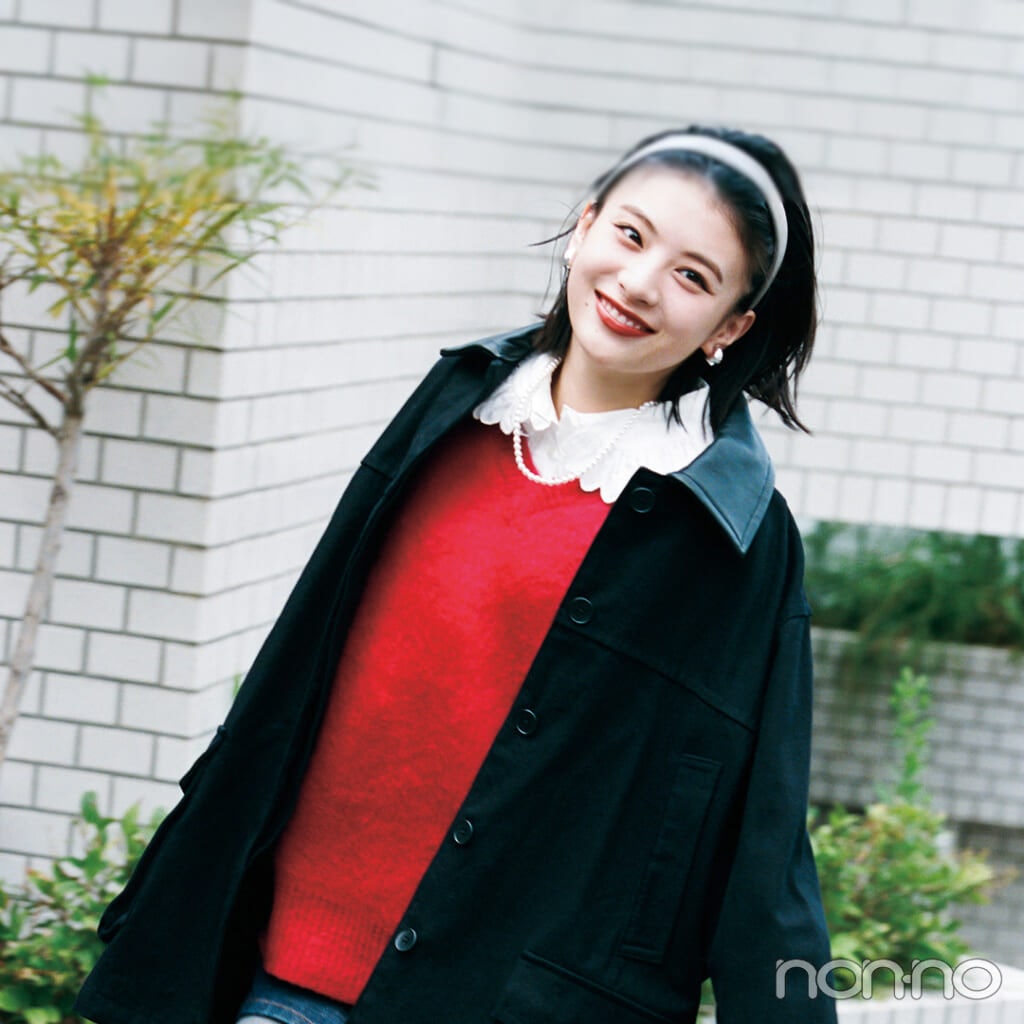 【出口夏希のパリシックな赤コーデ】小物やアウターで自由に赤を取り入れて