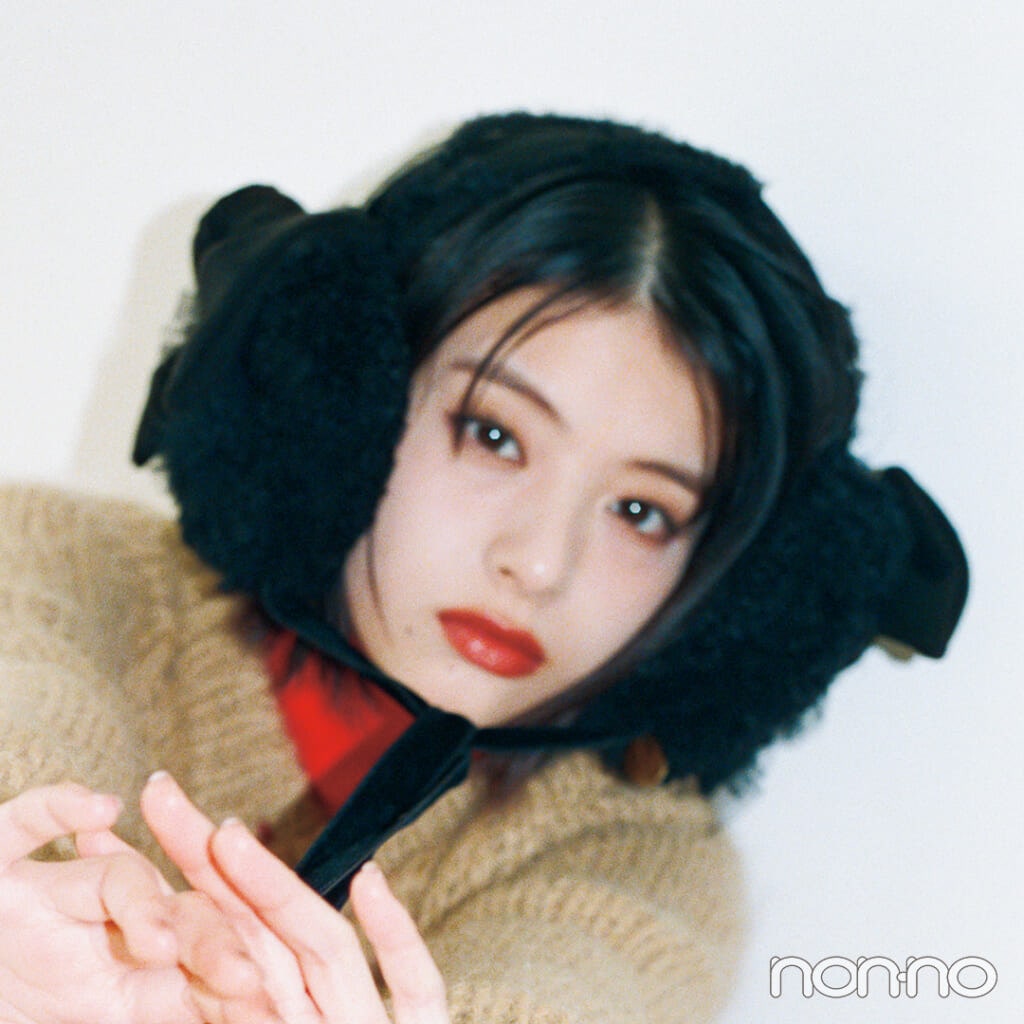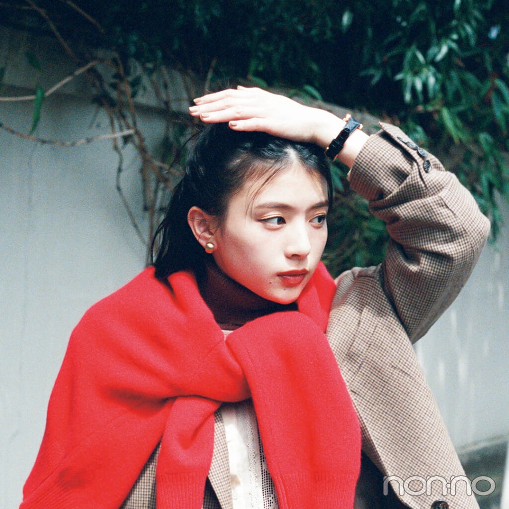 出口夏希とパリシックな冬の赤。ブラウントーンを合わせて柔らかさをプラス