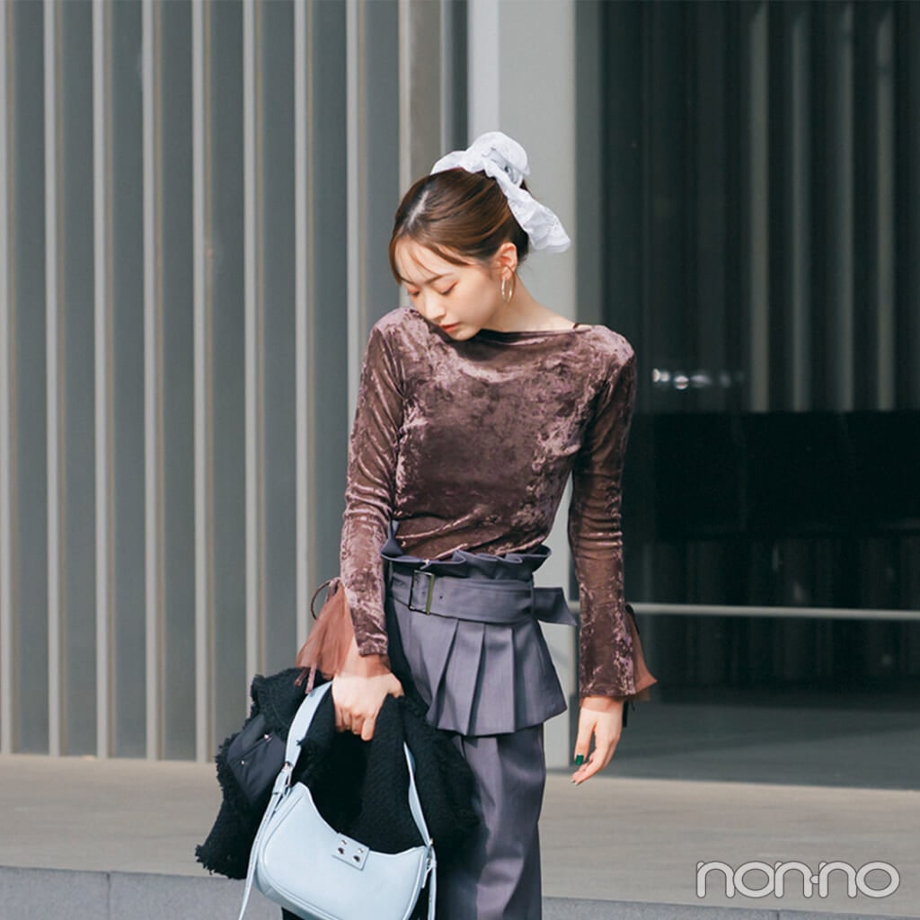 シックなベロアをまとい、ぐっと大人っぽく【大学生の毎日コーデ】