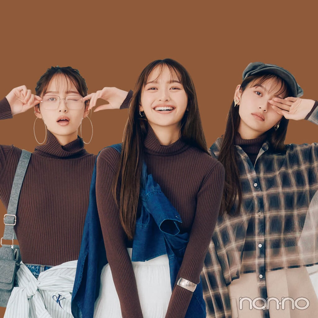 ブラウンタートルニットを5通りに着回し!シャツを合わせてマンネリを打破!