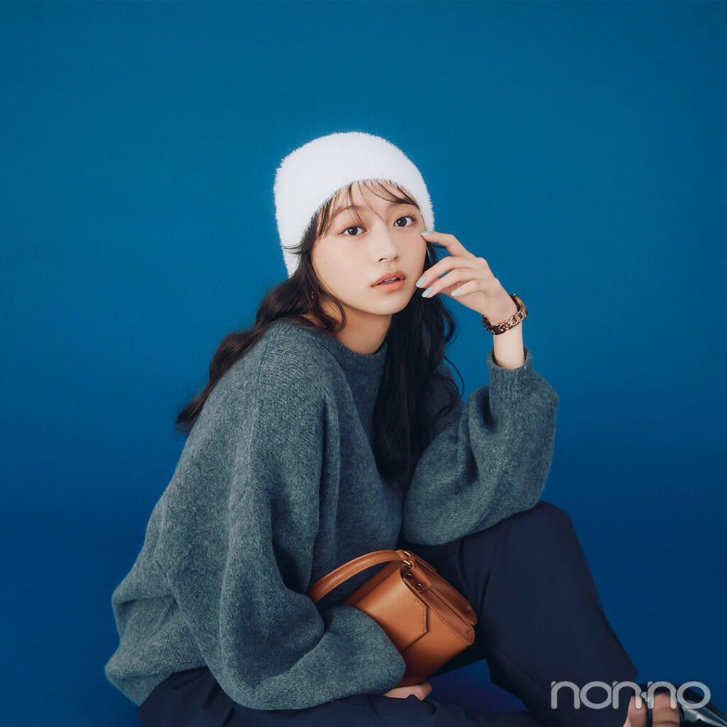 ふわふわニット帽がチャーミングなハズシ【大学生の毎日コーデ】