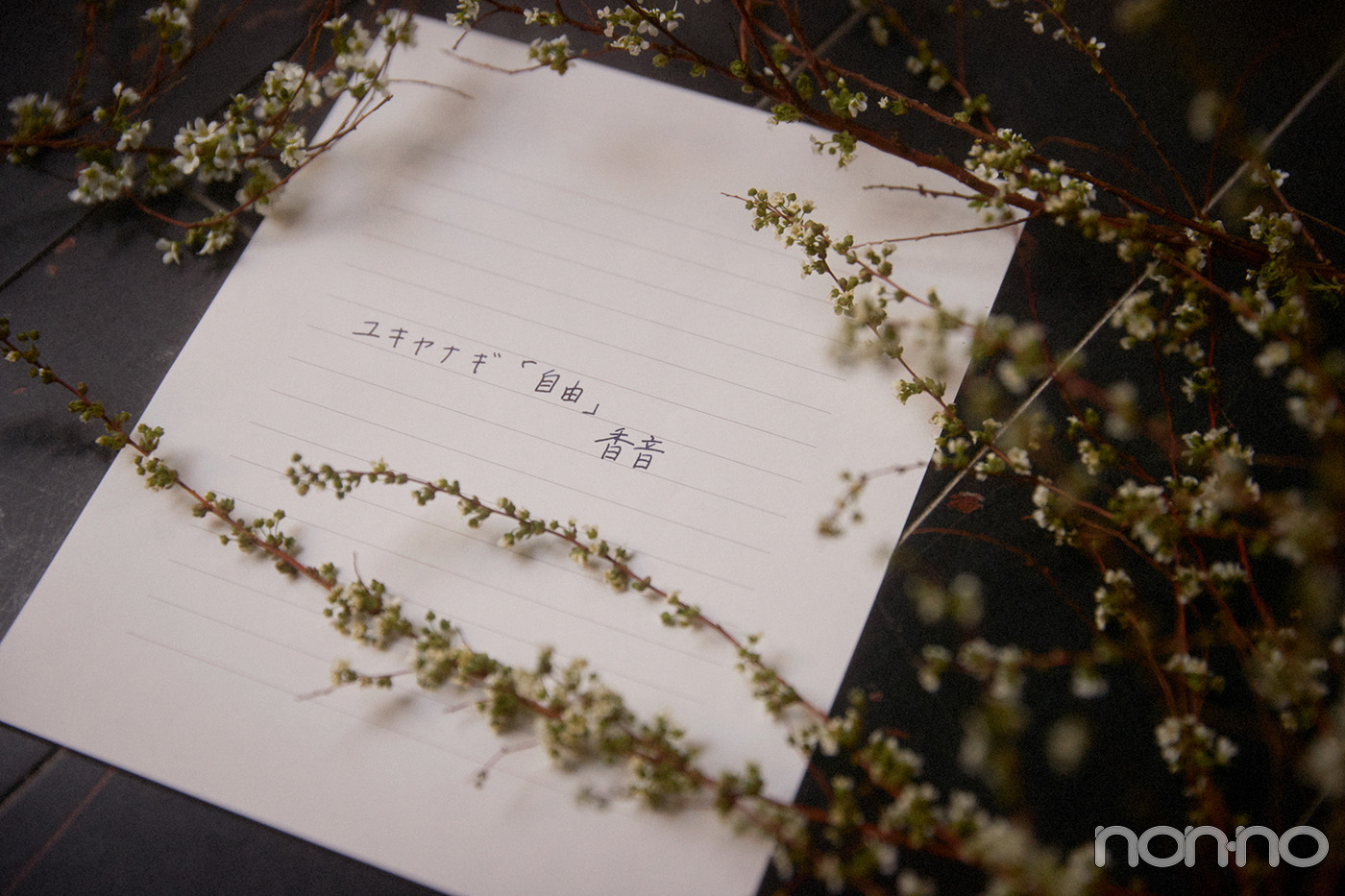 ノンノモデルと季節の花、そしてその花言葉をテーマにした撮り下ろし写真。ノンノでしか見られないスペシャルな連載「ノンノモデルが綴る花言葉」。第12回は、香音×ユキヤナギ。自分の“好き”を愛し、純真無垢な童心とチャーミングな魅力で会う人みんなを虜にしてしまう香音。荘厳な日本家屋の中で捉えられた、自分らしさを謳歌する香音の自己表現をご覧あれ。インタビューでは“自由、気まま”をキーワードに香音の現在地点を語ります。