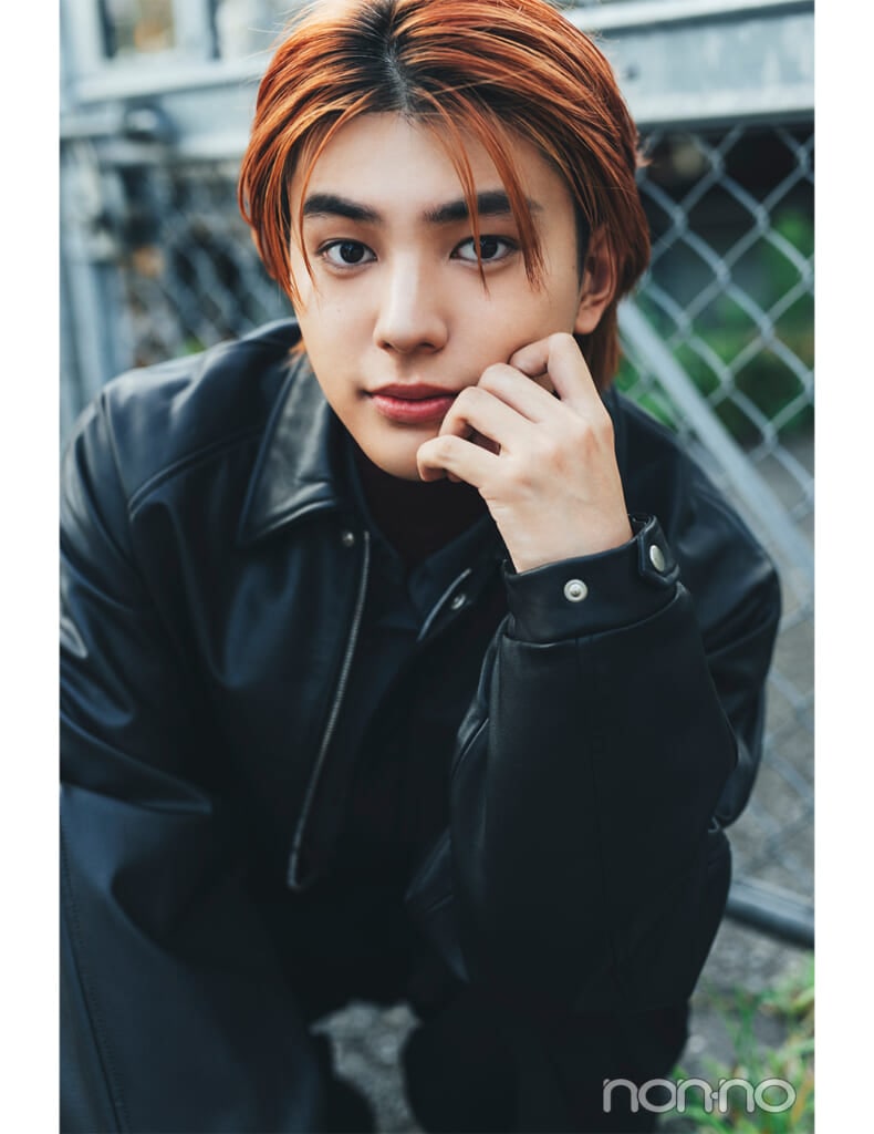 スタイリストさんに用意していただいた衣装の中で、一番私服のムードに近いアイテムを選びました。矢沢あいさんのマンガ『NANA』の影響で、ライダースとかレザーとか、少しロックなテイストのアイテムが好きなんです。今回選ばせていただいた皮ジャンにもなじみがあります。