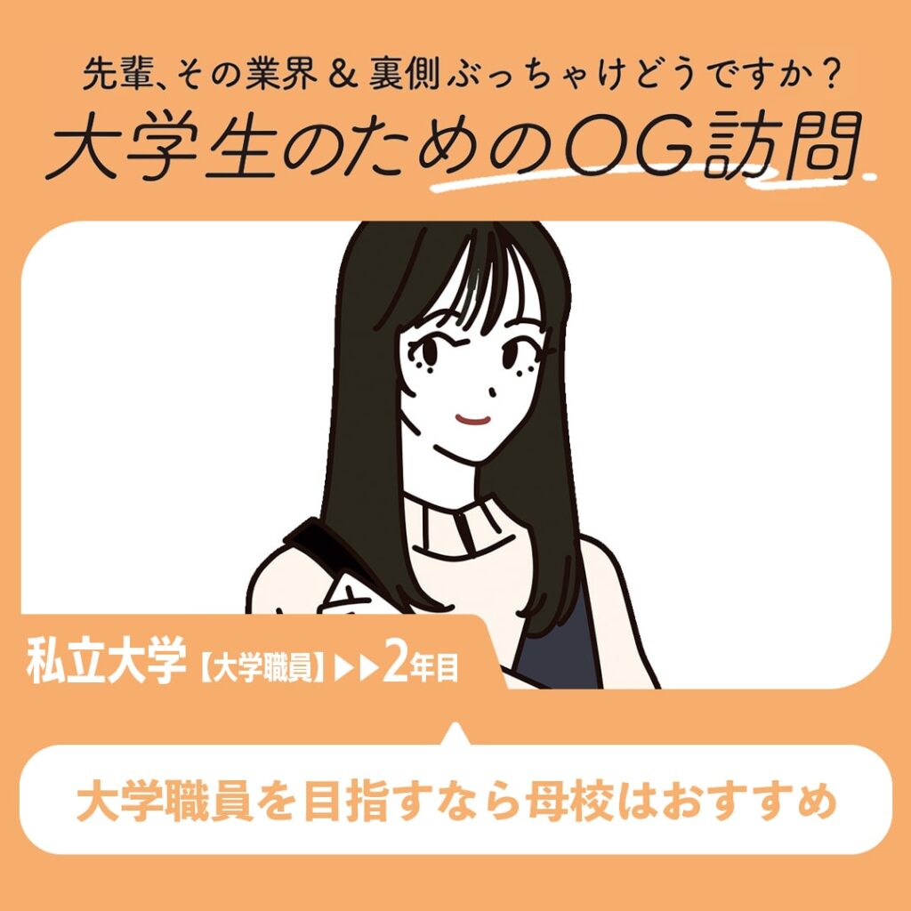 ちょっぴり聞きにくい業界や職場のリアルを、根掘り葉掘りインタビュー。今回は大学職員として働くOGに話を聞きました!