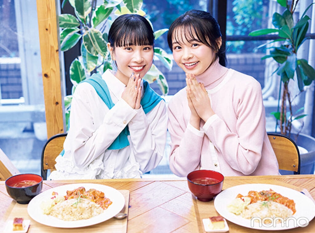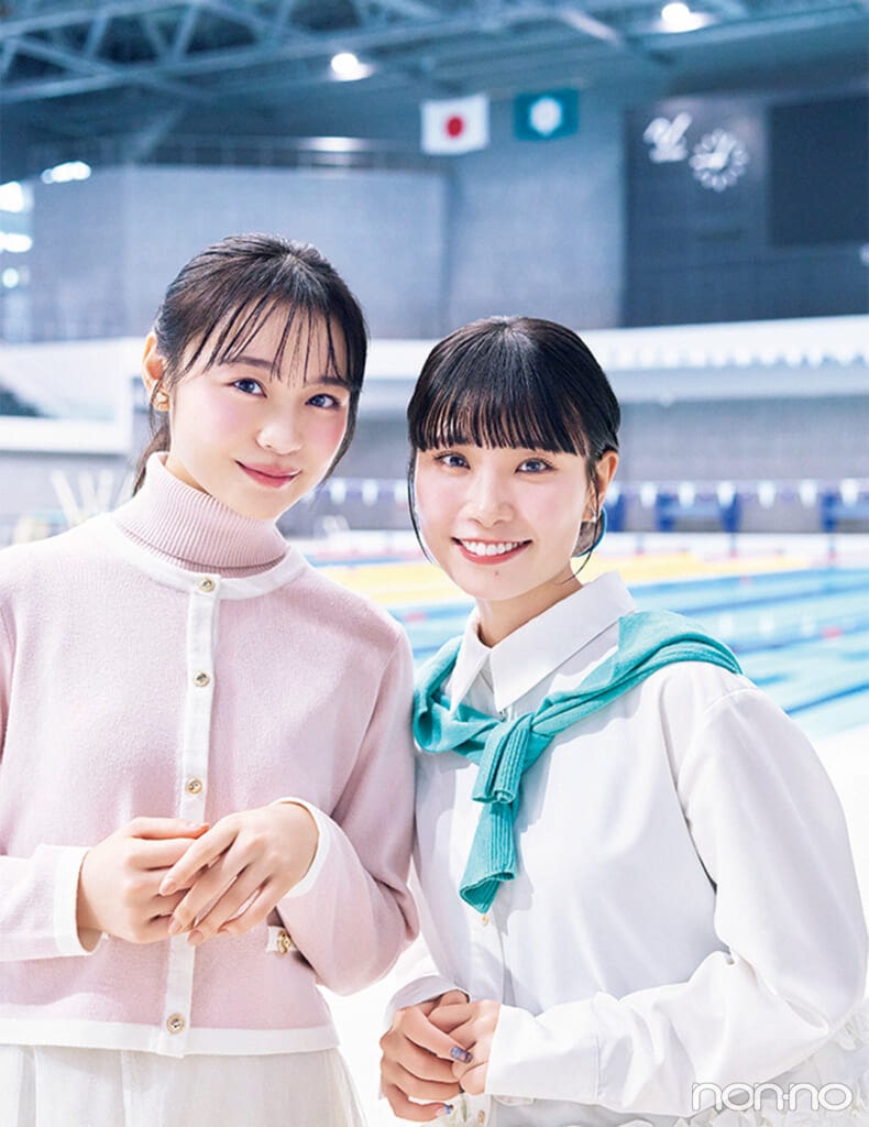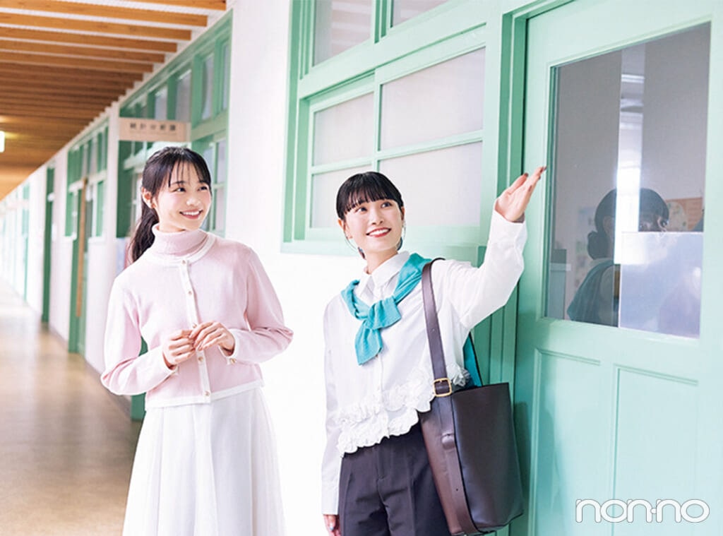 [芽亜里]ニット&カーディガンセット¥11990・スカート¥12980/WILLSELECTION ルミネエスト新宿店 イヤリング¥2310/サンポークリエイト(アネモネ) [鐘ヶ江さん]すべて/本人私物