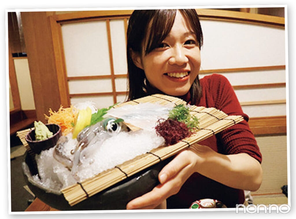 佐賀のご当地グルメとともにお酒を堪能! 名物唐津市“呼子のイカの活き造り”は、お酒にも合う間違いのない逸品。