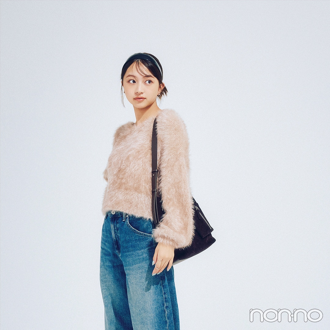 シャギーニットにタートルをイン! 今っぽいバランスに【大学生の毎日コーデ】