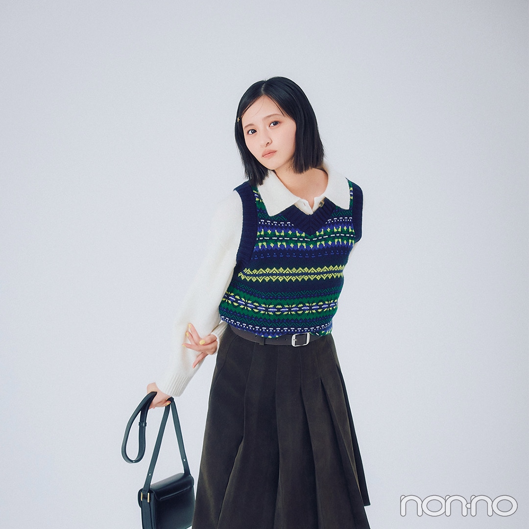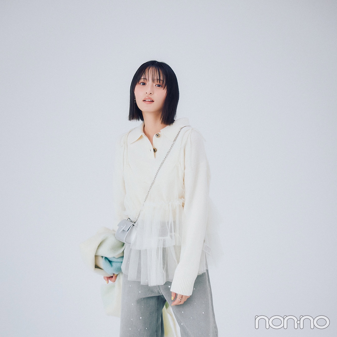 人気のポロニットはレイヤードでトレンド感を加速【大学生の毎日コーデ】