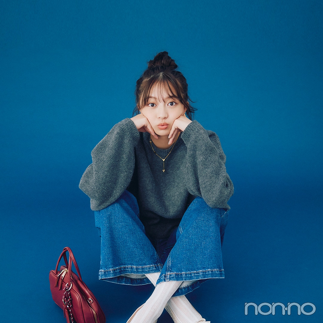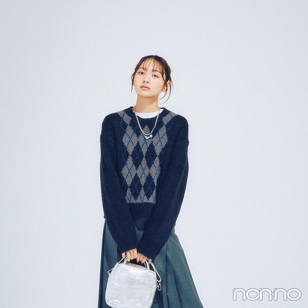 ゆるグレーニットは質感小物で盛り上げを【大学生の毎日コーデ】