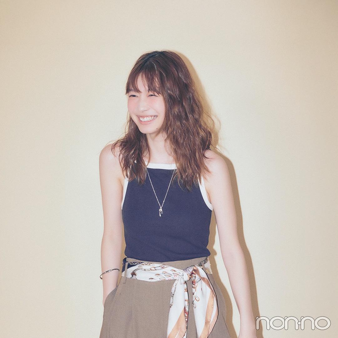 キャミ×タンクレイヤードでさりげなく華やかに【大学生の毎日コーデ】