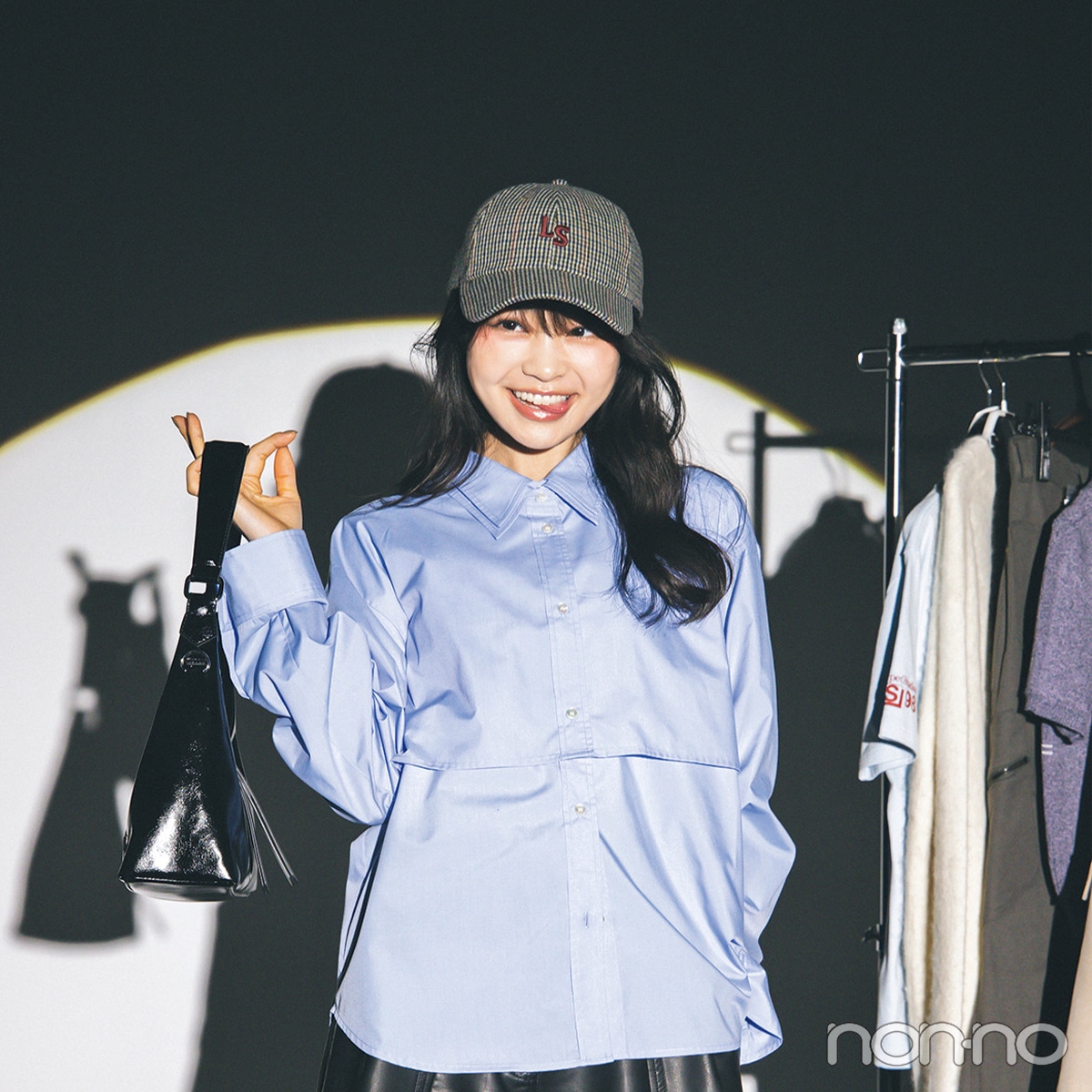 ビッグシャツを腰巻き、ビスチェ風アレンジが新鮮【大学生の毎日コーデ】