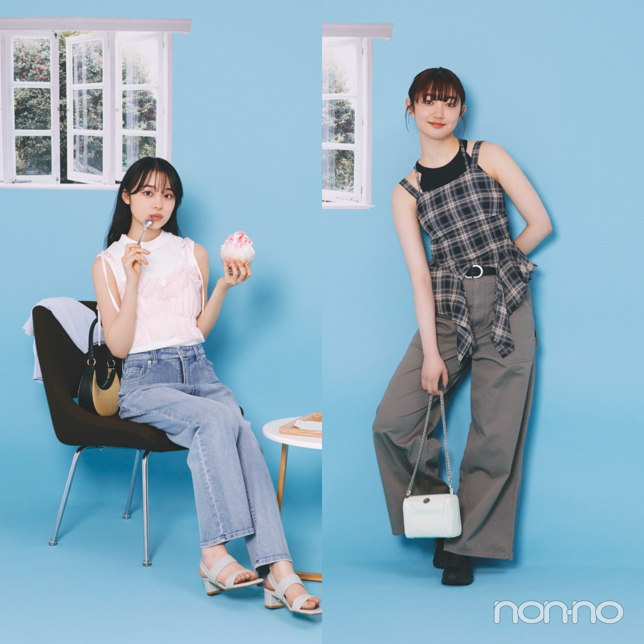友達とサマーセールに行くなら試着しやすいおしゃれタンクで【フェミニン派 林芽亜里&カジュアル派 小宮山莉渚の夏休みイベントコーデ】vol.10