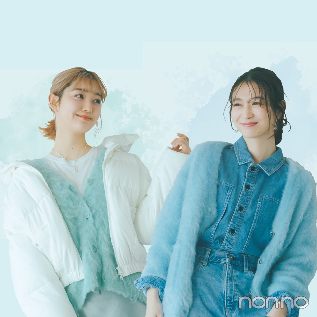手持ちの冬服で暖かいまま春めく方法。シャギーカーデは淡色ワントーンで季節をスウィッチ!