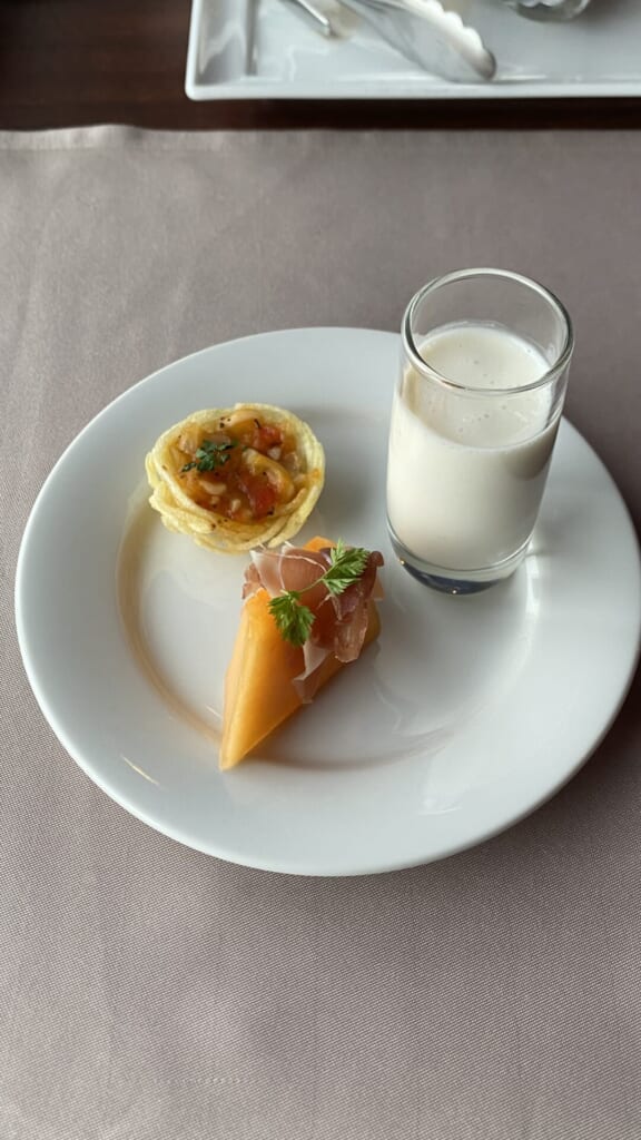 左から、生ハムメロン、ヴィシソワーズ トリュフの香り、ポテトガレットです🍴