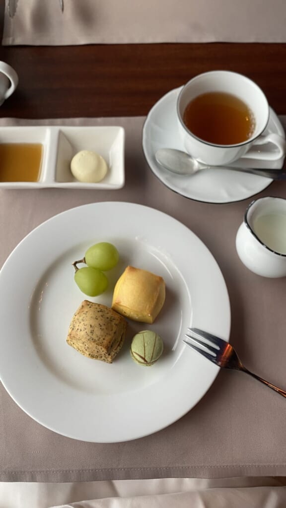 2種のスコーン、シャインマスカットとイタリアンフリット、本日のマカロンになっています!甘いものでいっぱいになったお口直しをしてくれるチーズボールはサクサク、中はモッチモチで久しぶりの塩気が体に染み渡ります😌