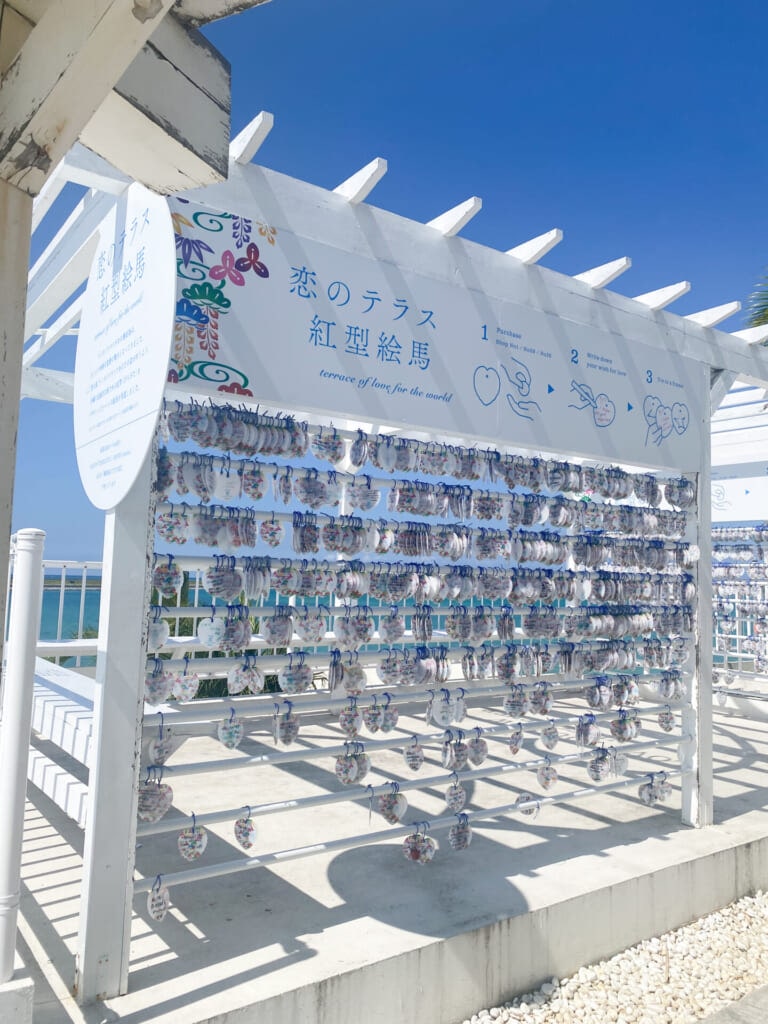 『ウミカジテラス』を歩いていると発見したのは【恋のテラス 紅型絵馬(びんがたえま)】です。