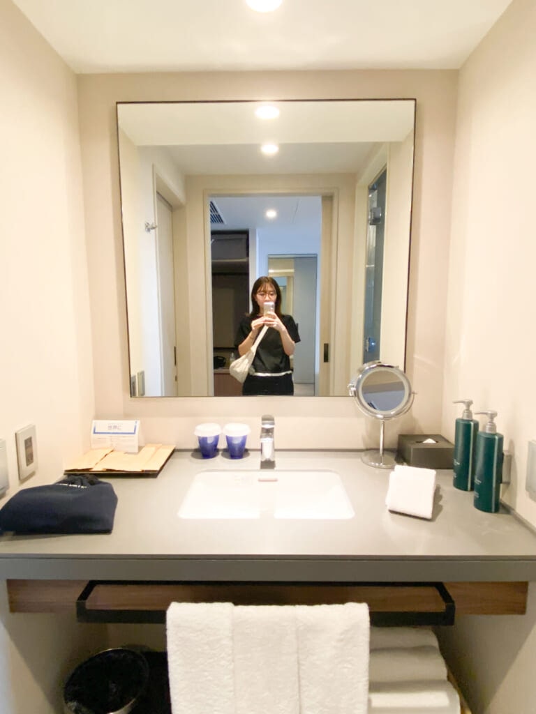 洗面台は、大きな鏡に加えて、拡大鏡も設置されていてとてもメイクしやすかったです。