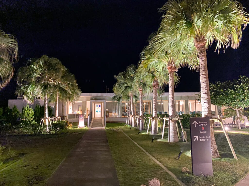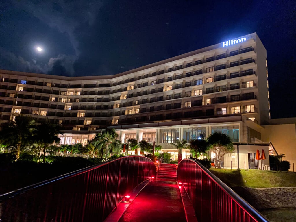 『ヒルトン沖縄瀬底リゾート』は、沖縄の静かな夜にそっと浮かび上がるような、遅い時間ならではの雰囲気も魅力です。