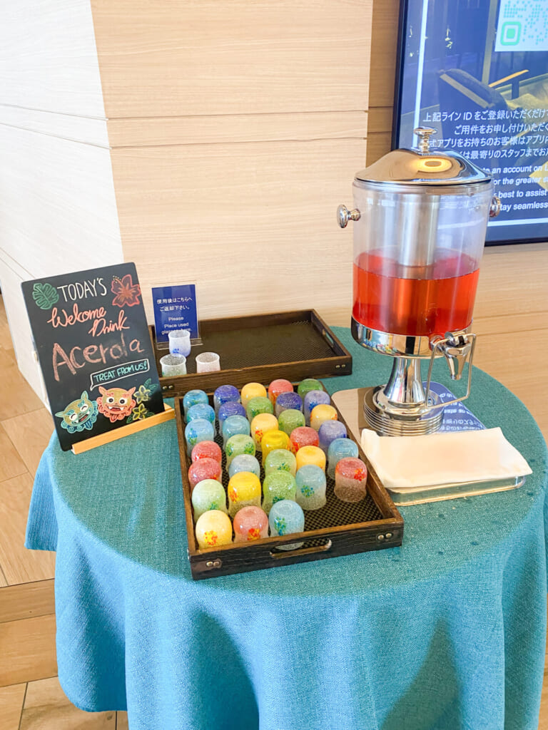 施設内に立ち入ると、ウェルカムドリンクとしてアセロラジュースが用意されていました。爽やか&華やかなフレーバーが旅の疲れを癒してくれます。