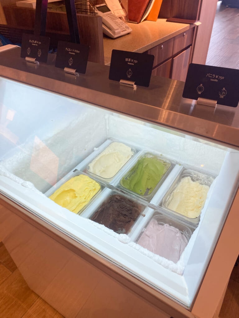 エネルギッシュなオレンジのカラーが印象的なロビーラウンジ&バー「ハナリ」の横では、アイスクリームを販売。ちょっと甘いものが食べたいときに嬉しいです。