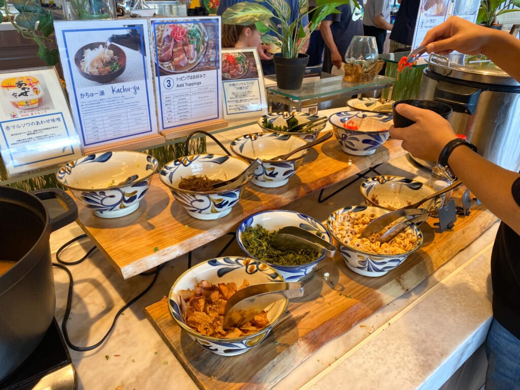 体に優しい沖縄風お吸い物「かちゅー湯」など、地元グルメを自分好みにアレンジして、朝から食べやすいように工夫できます。