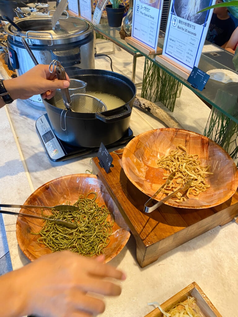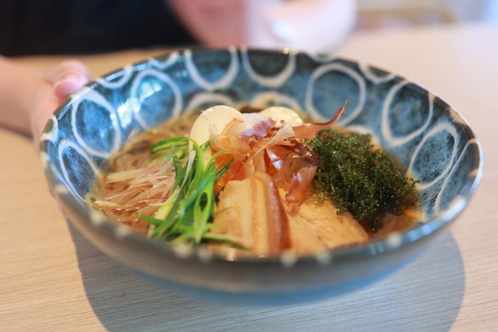 アオサやゆし豆腐など、お好みのトッピングで楽しめる「沖縄そば」は、特に多くの方が手に取っている人気メニューでした。