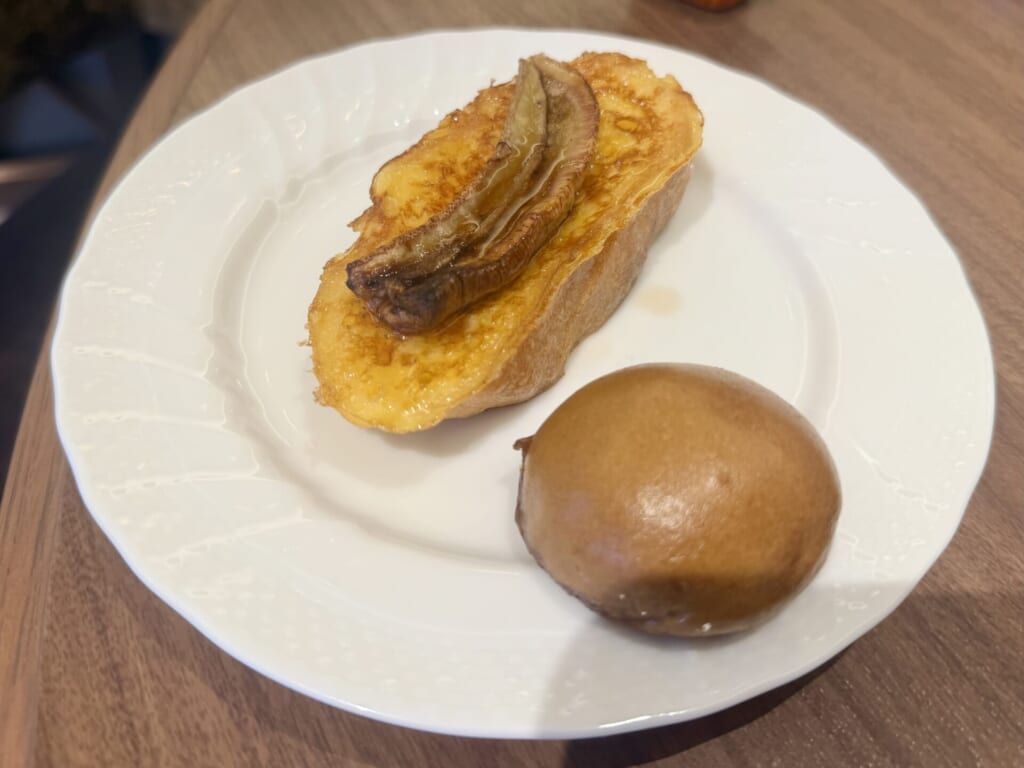 食後には焼きたてをいただけるフレンチトーストを。これが外はカリッと、中はとろっとで美味しすぎました🤤