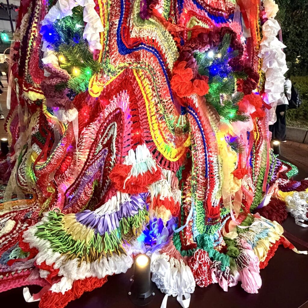 館内各所にニットをまとったクリスマスツリーが登場。