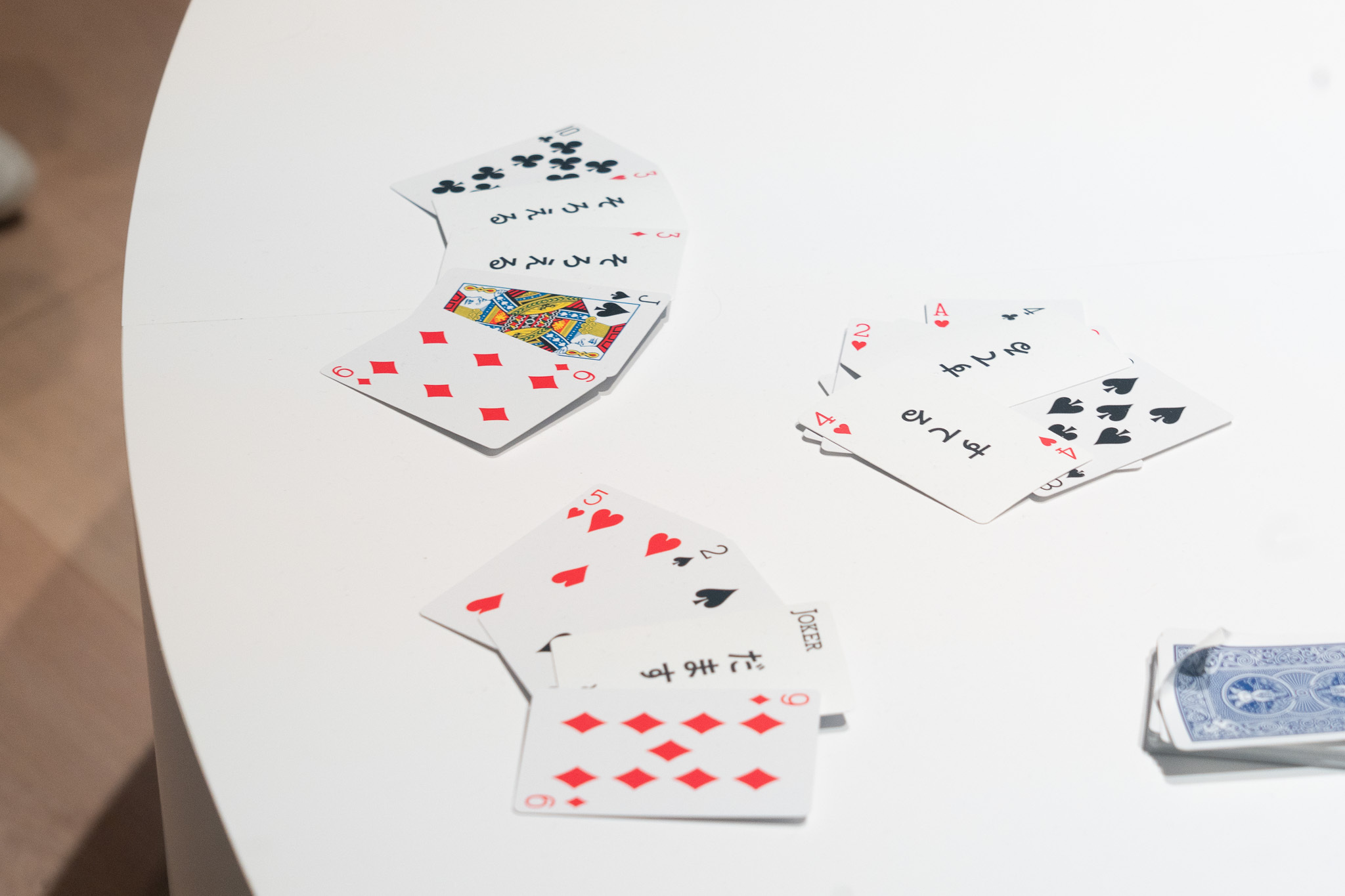 「えっ、こんな言葉書いたっけ?」と、自分の手元を二度見してしまう。「かくかくじかじか」は、書いたはずの文字が、いつの間にか別の言葉に変わってしまう不思議な展示です。