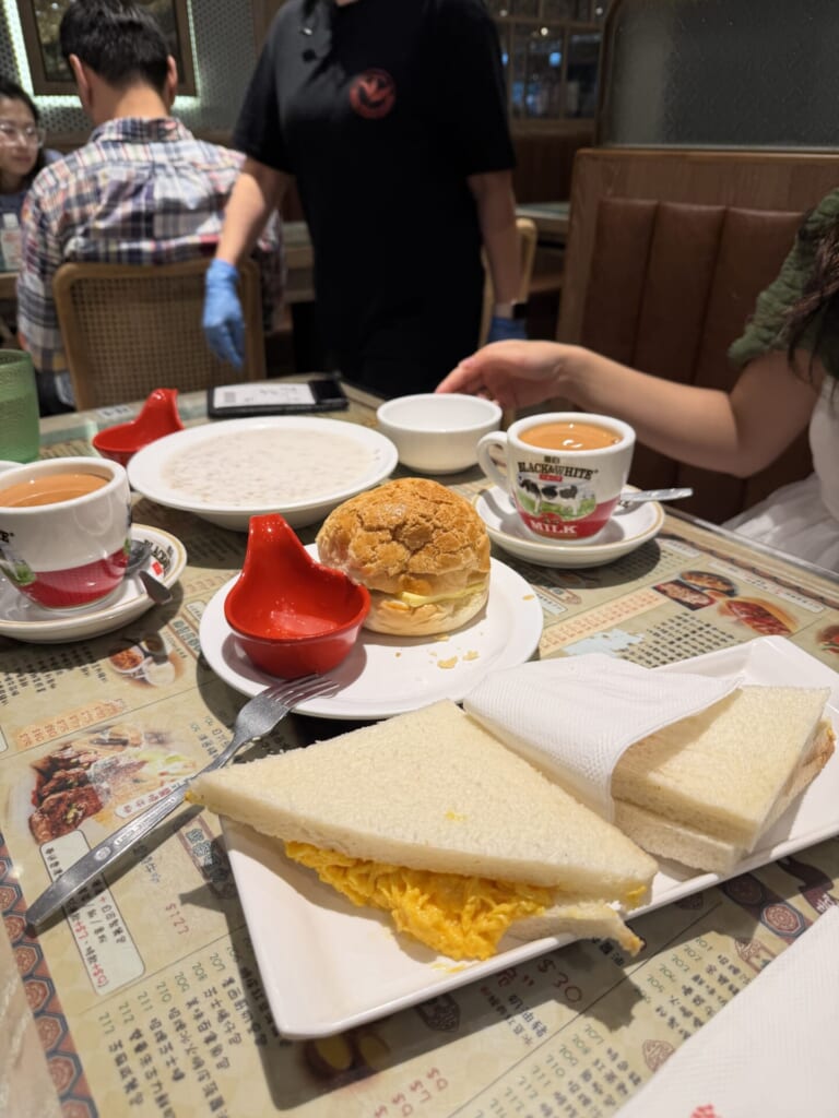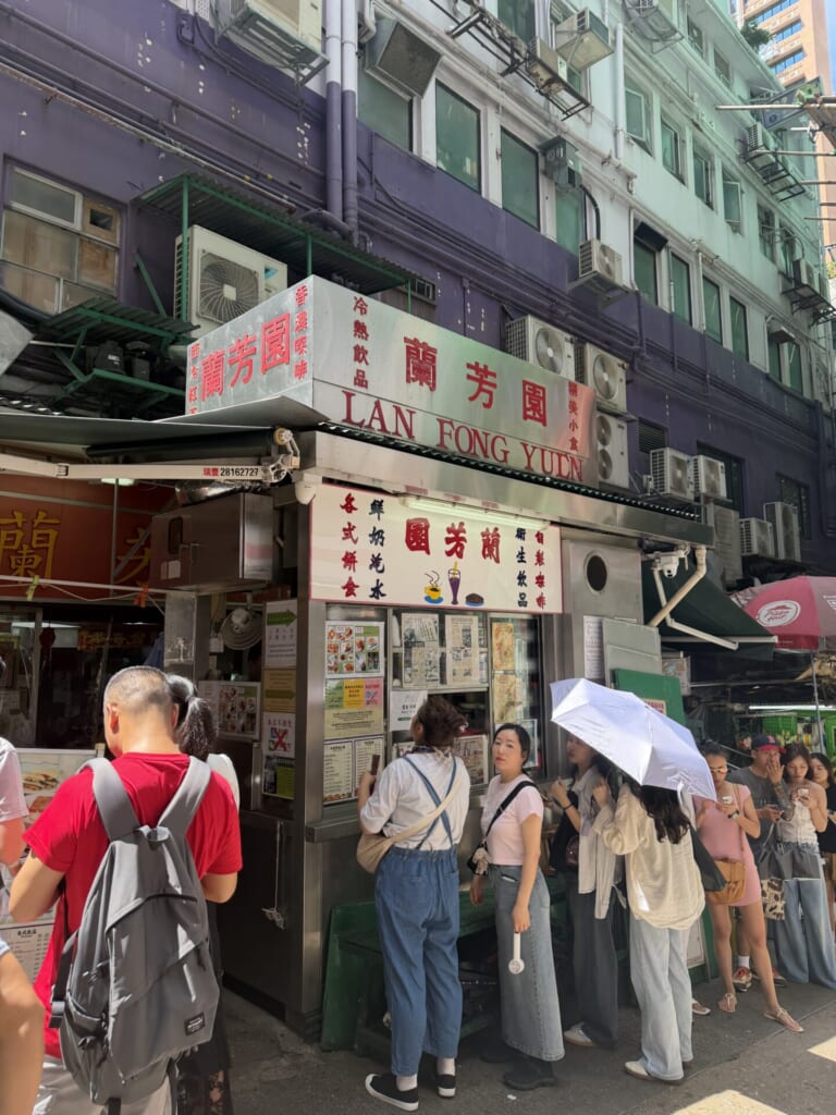 香港式フレンチトーストやミルクティーで有名な蘭芳園。色んなお客さんと相席をして食べるスタイルが、旅行の特別感を味わえて楽しい。食事のメニューを頼んでるお客さんも多く、ランチとしての利用も◎!