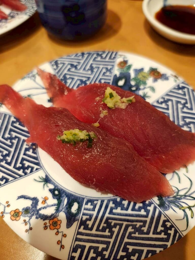 本まぐろ。シャリよりネタがとても大きく、ネタの方が余ってしまうという珍しい現象が起きてしまうのが塩釜港の特徴。