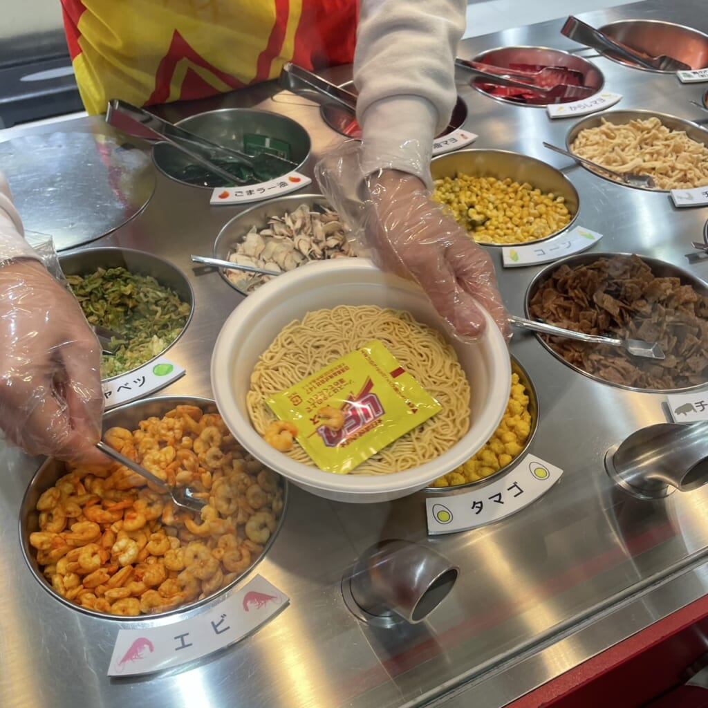 グッジョバ!!内にある「マイU.F.O.ファクトリー」では、好きな具材を選び、世界にひとつのUFOカップ焼きそばを作れます。