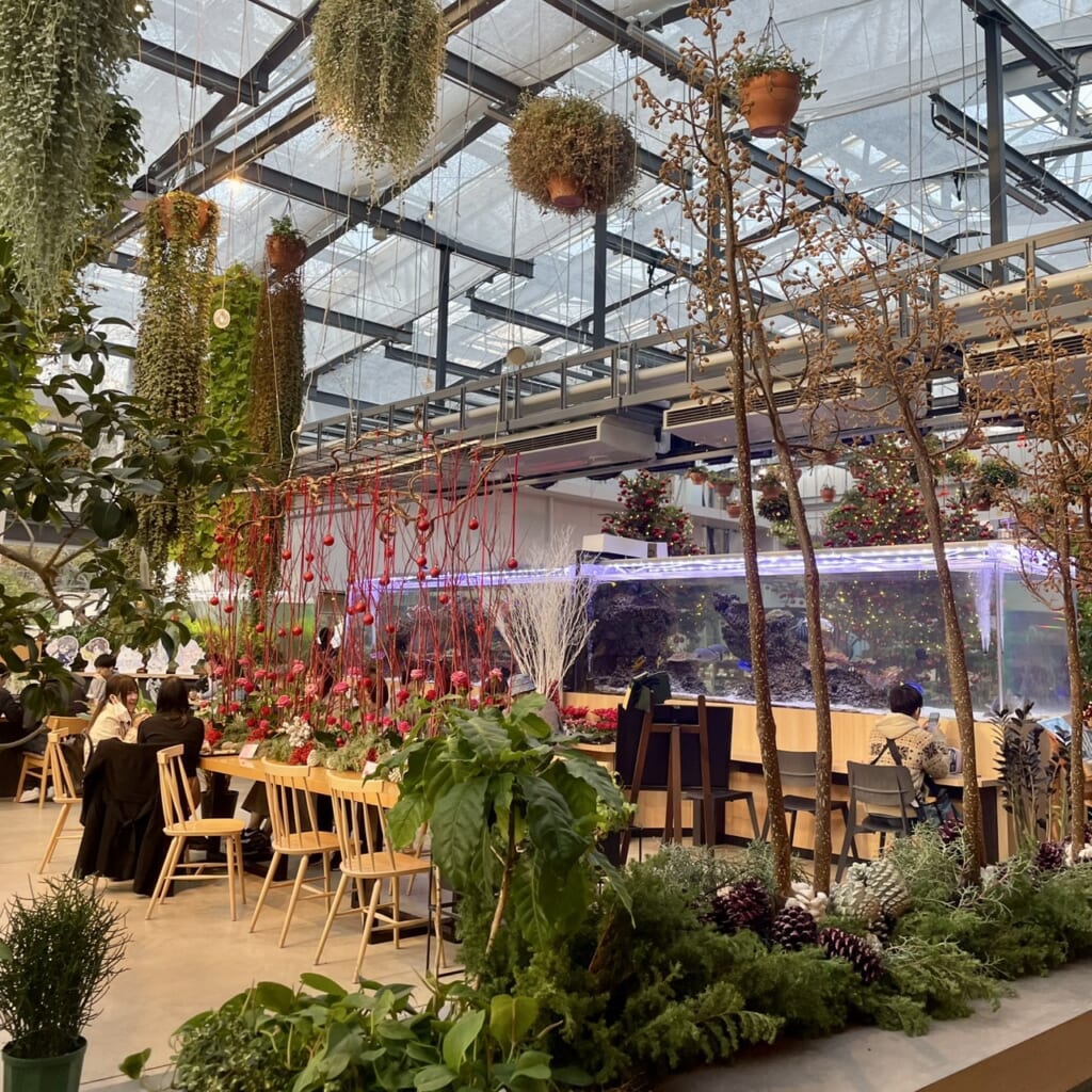 花とデジタルが融合した空間で、落ち着いたスタート。映像演出は写真映えし、静かな時間を楽しめます。