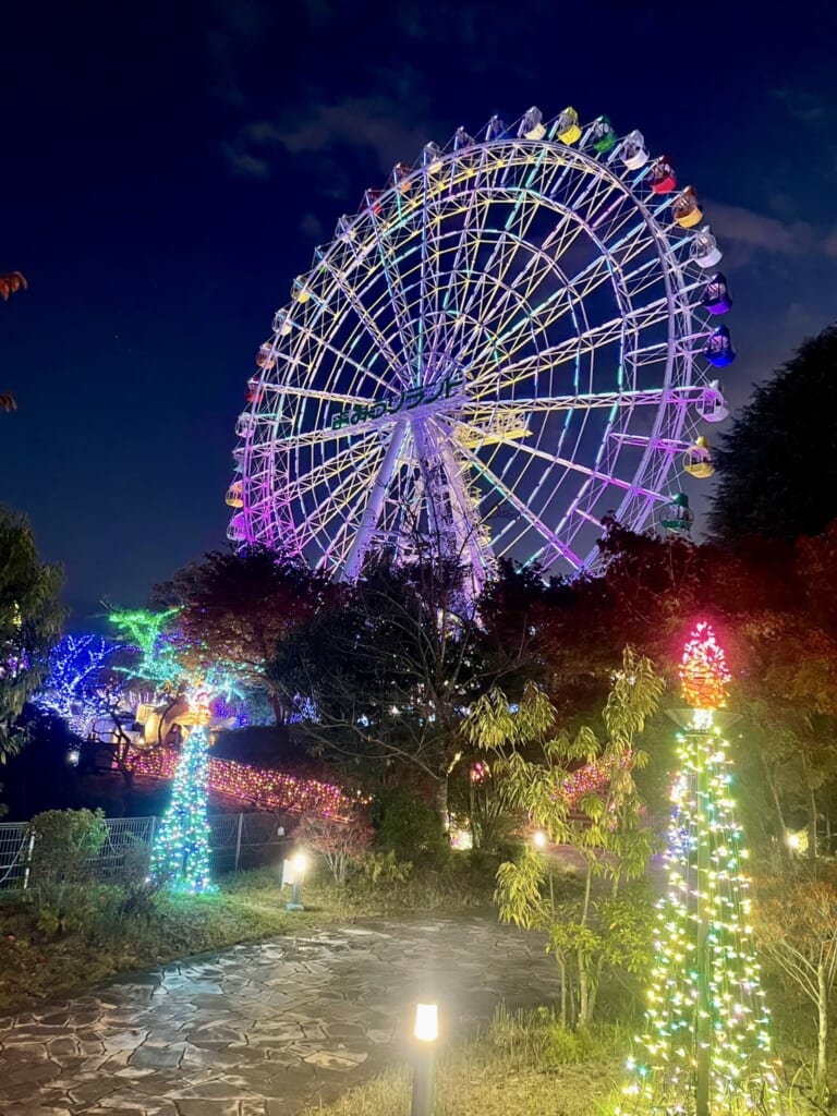園内全体を見渡せる夜景は特別感があり、冬のおでかけの余韻が続きます。
