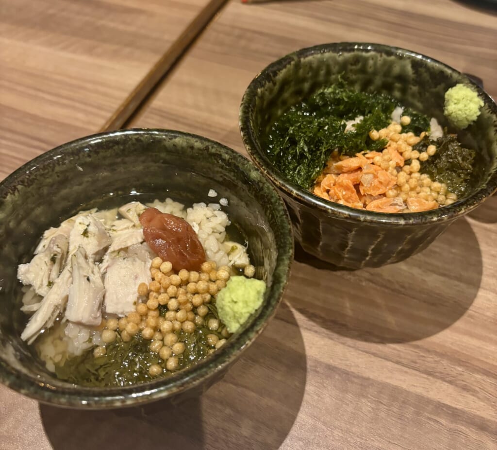 5.鮭と海苔、鶏と梅のお茶漬け🍚