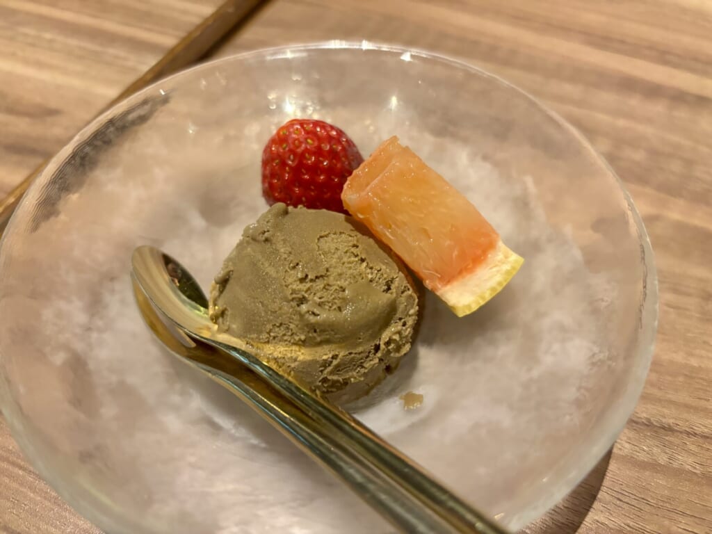 私はほうじ茶のアイスにしました。甘すぎずさっぱりと食べられて食後のデザートにピッタリです!