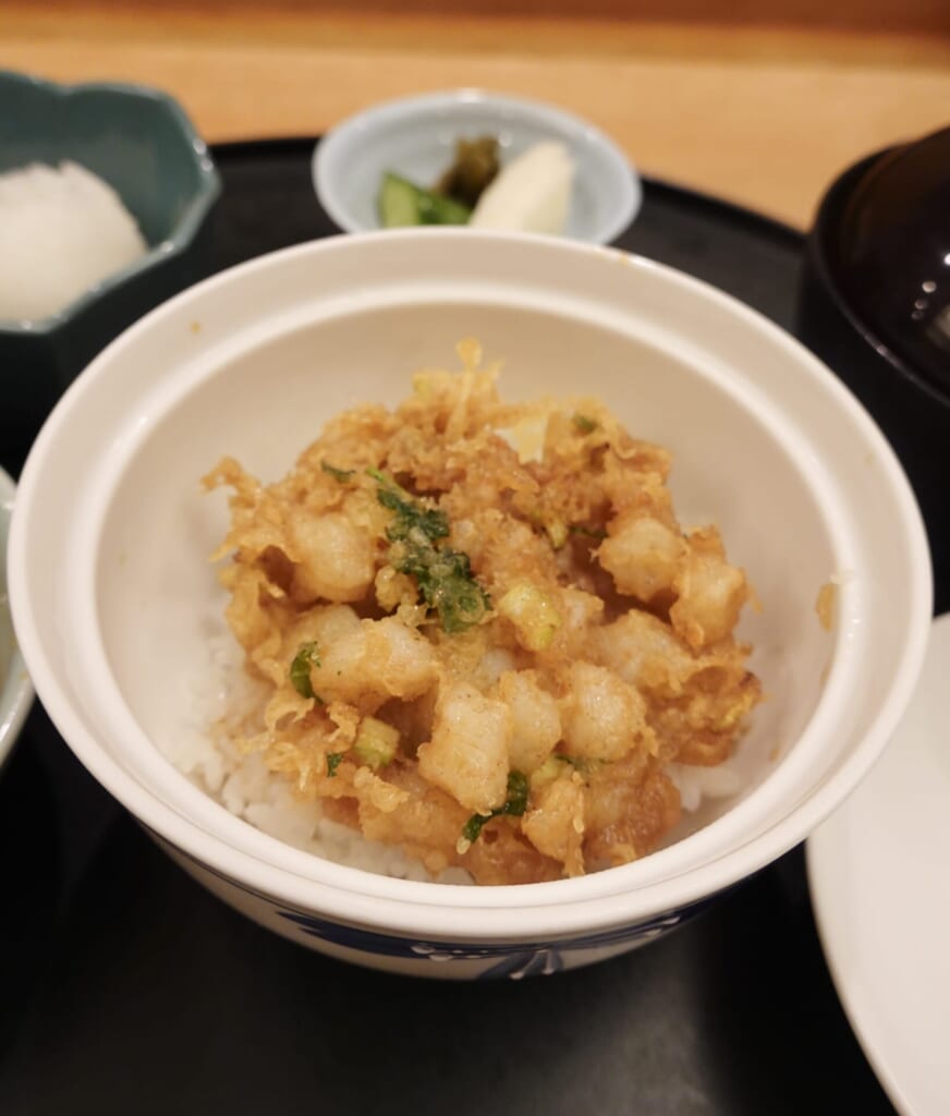 締めは「天丼」か「お茶漬け」から選ぶことができ、今回は天丼を注文。