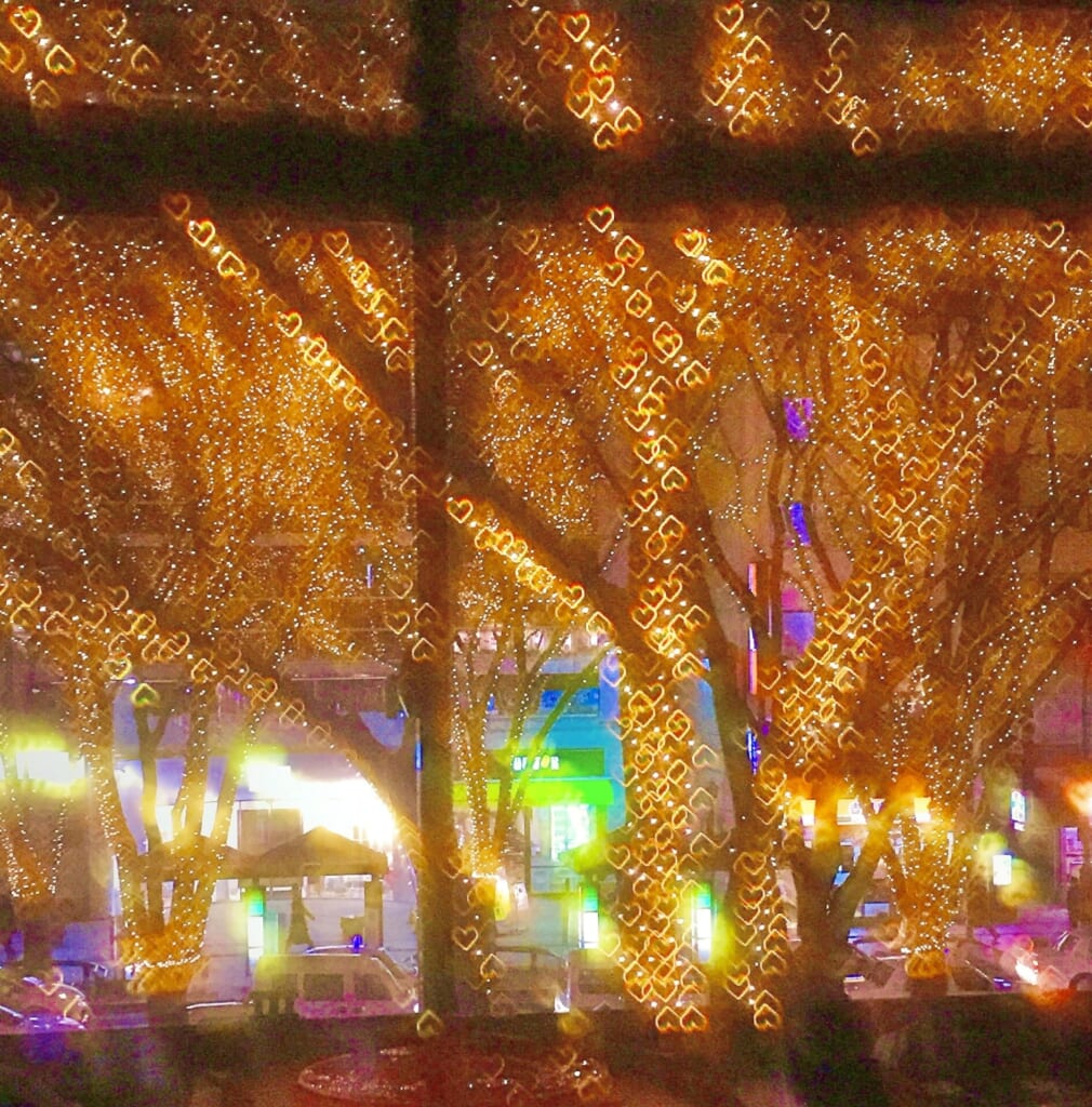 こちらは数年前の写真なのですが、定禅寺通沿いのお店からはこんな風に目の前に広がる光の絶景を楽しむこともできますよ✨光がハート型に見える不思議なメガネ越しに見た光のページェント♡