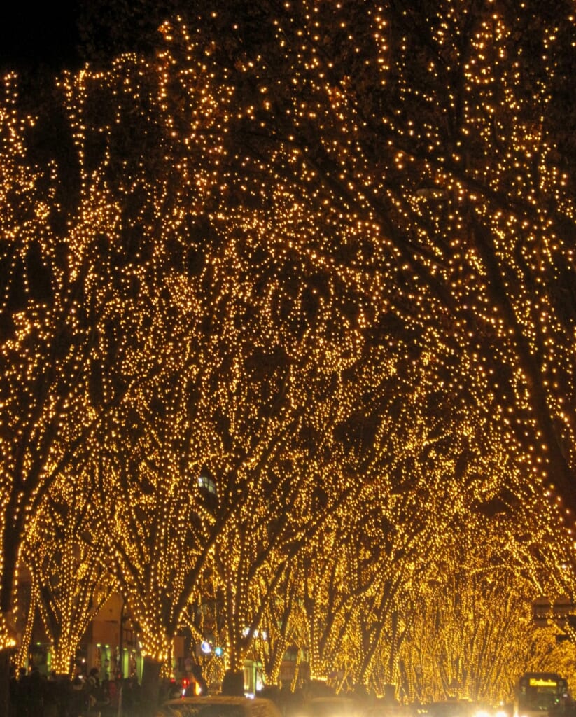 定禅寺通は遊歩道になっているので、光のトンネルの中をこうして歩くことができます✨