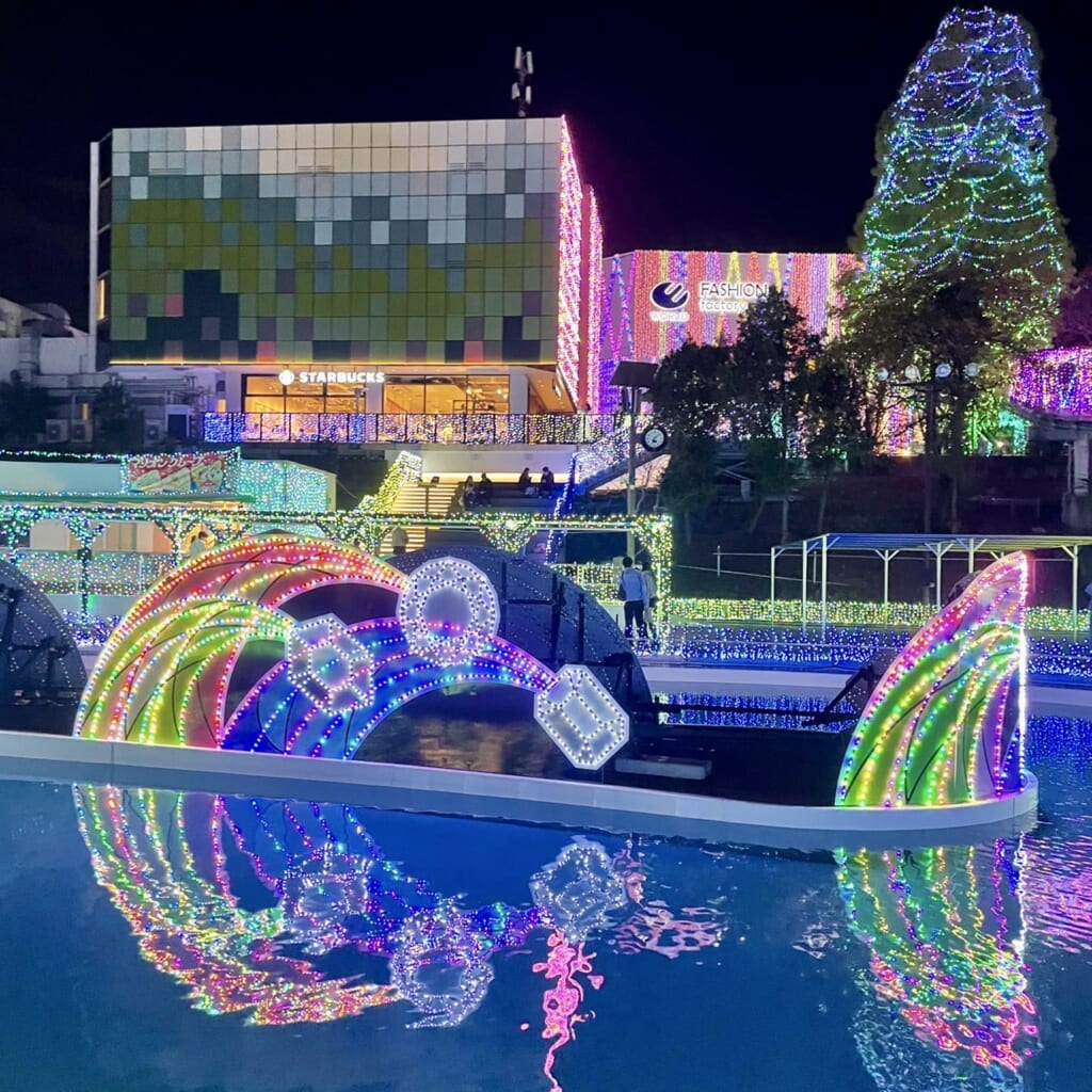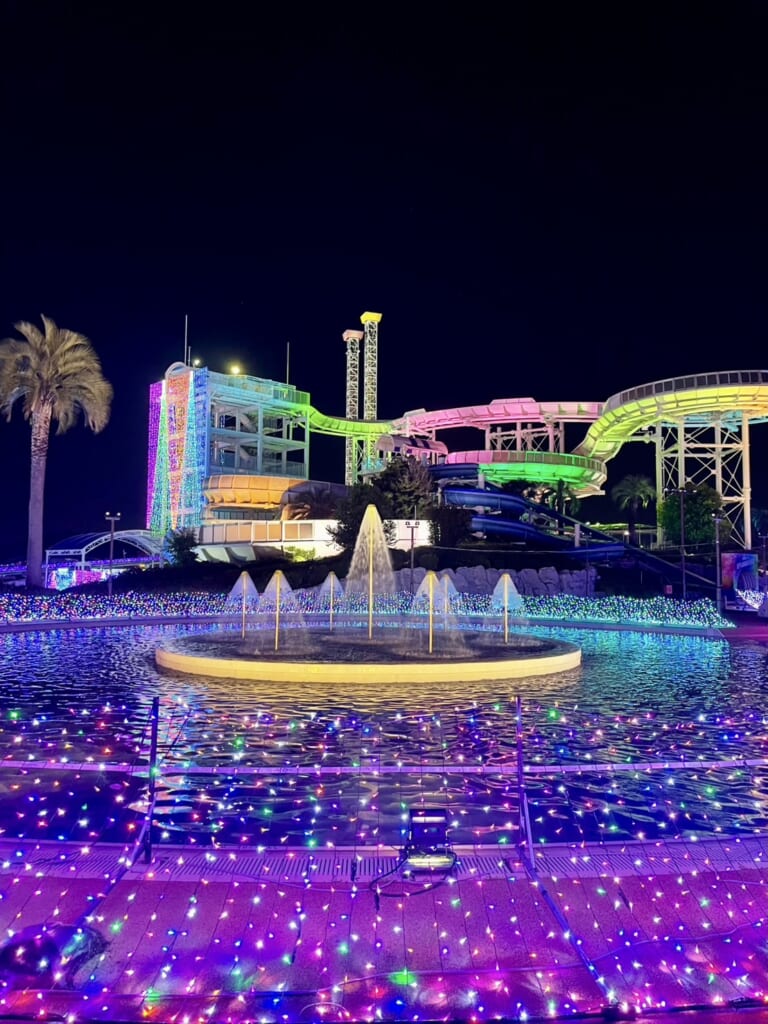 色鮮やかなライトが水面に反射し、時間帯ごとに異なる表情を楽しめます。寒い季節でも思わず見入ってしまう、よみうりランドならではの見どころです。