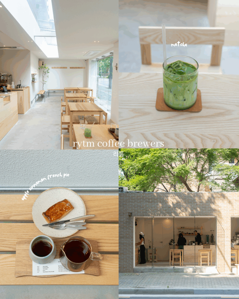 延南洞の静かな路地に佇む、落ち着いた雰囲気のカフェ。セレモニアルグレードのオーガニック抹茶を使ったラテや、香り高いコーヒーが人気で、朝からゆったりとした時間を過ごせます。