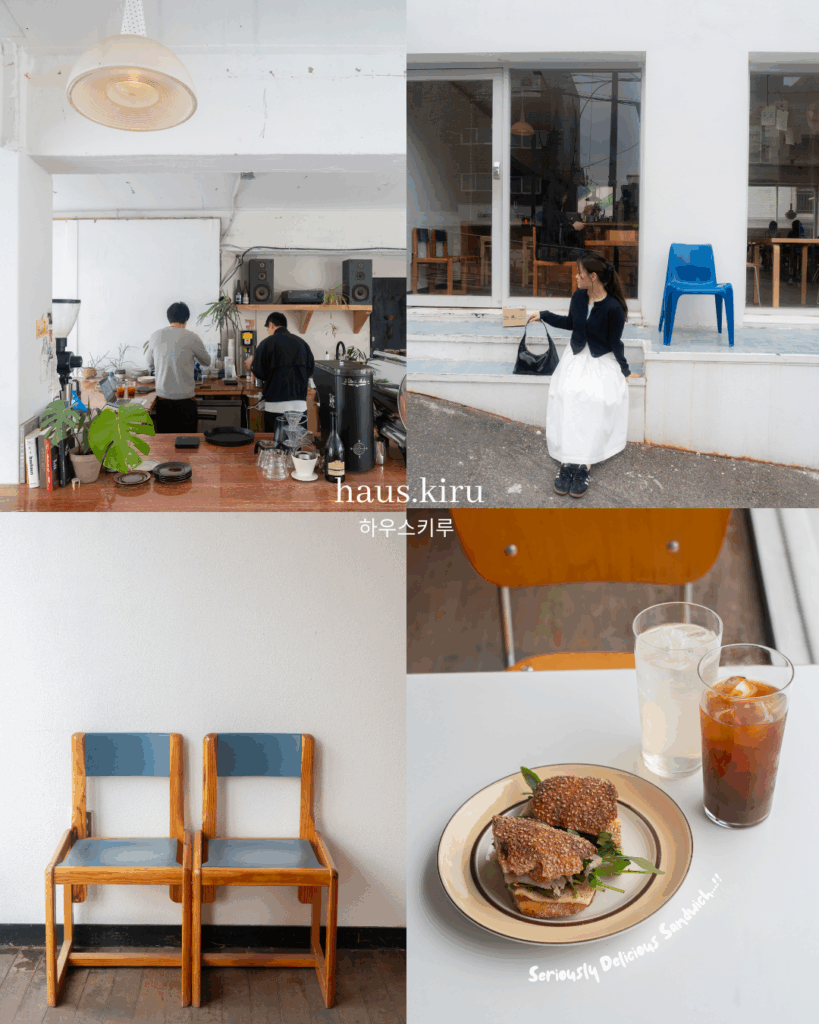 弘大エリアにある「haus kiru seoul」は、コーヒー好きの間でも知られる落ち着いた雰囲気のカフェ。ウッドやヴィンテージ感のある家具でまとめられた店内は、コンパクトながらも心地よい空間が広がります。