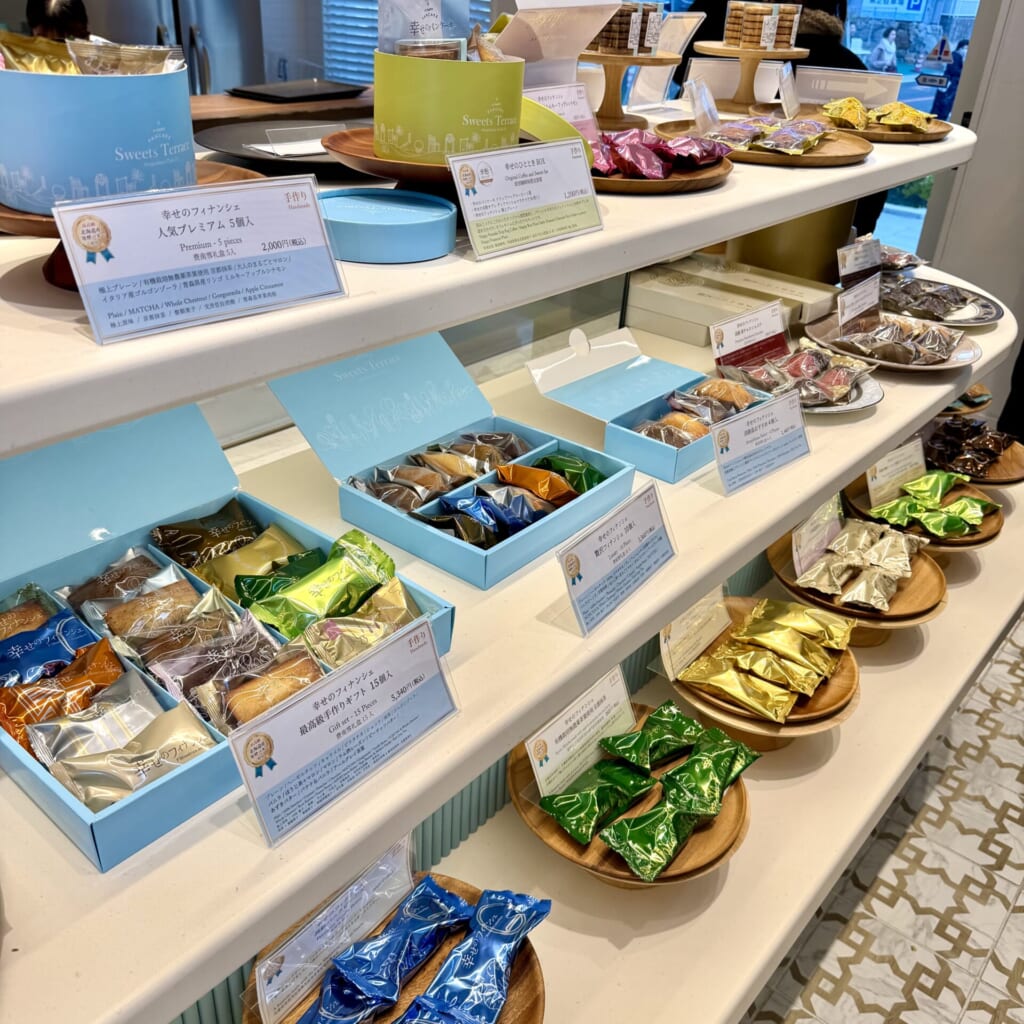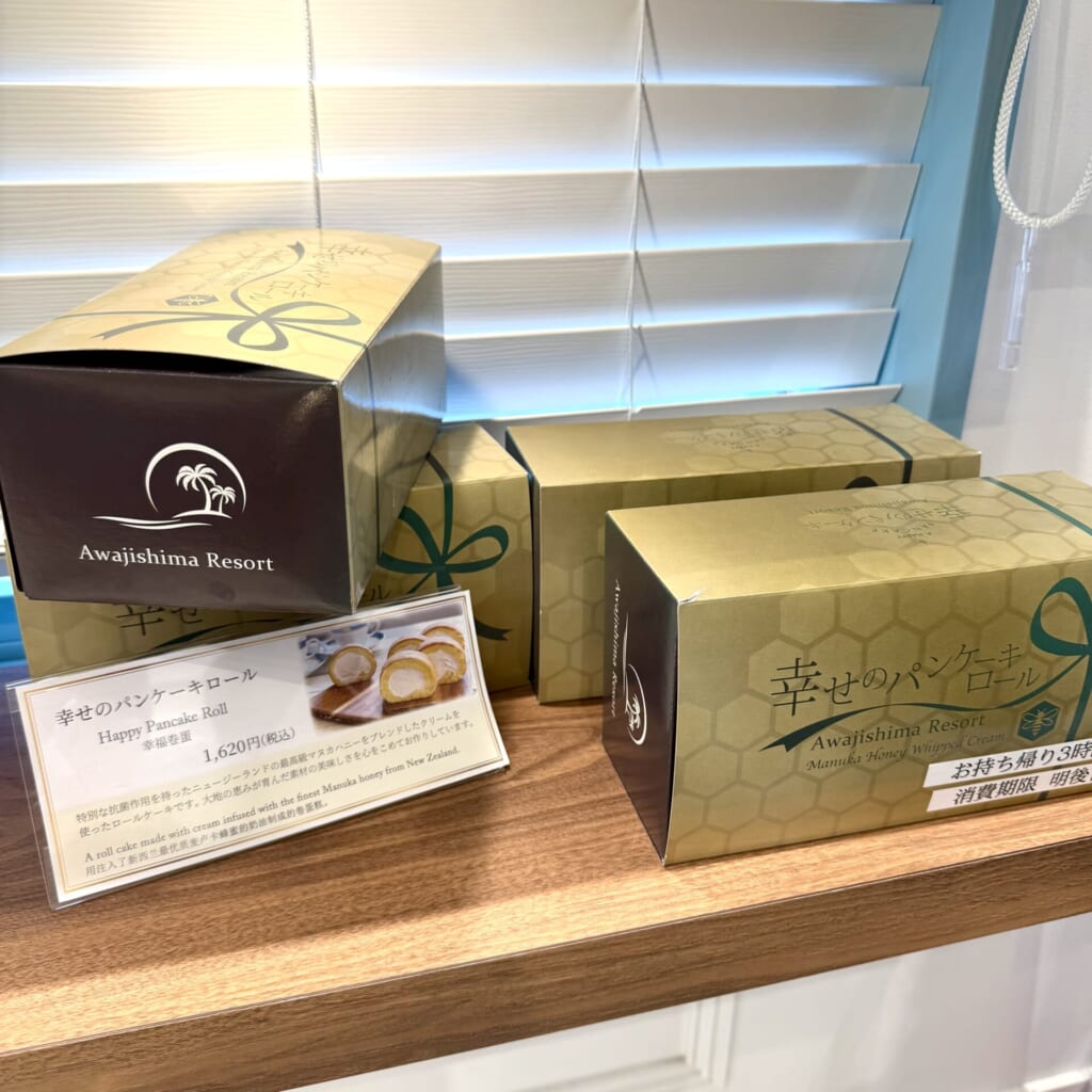 「幸せのパンケーキロール」をはじめ、「幸せのフィナンシェ」や「マヌカハニー大福」など淡路島リゾートのスイーツやドリンクを販売しています。