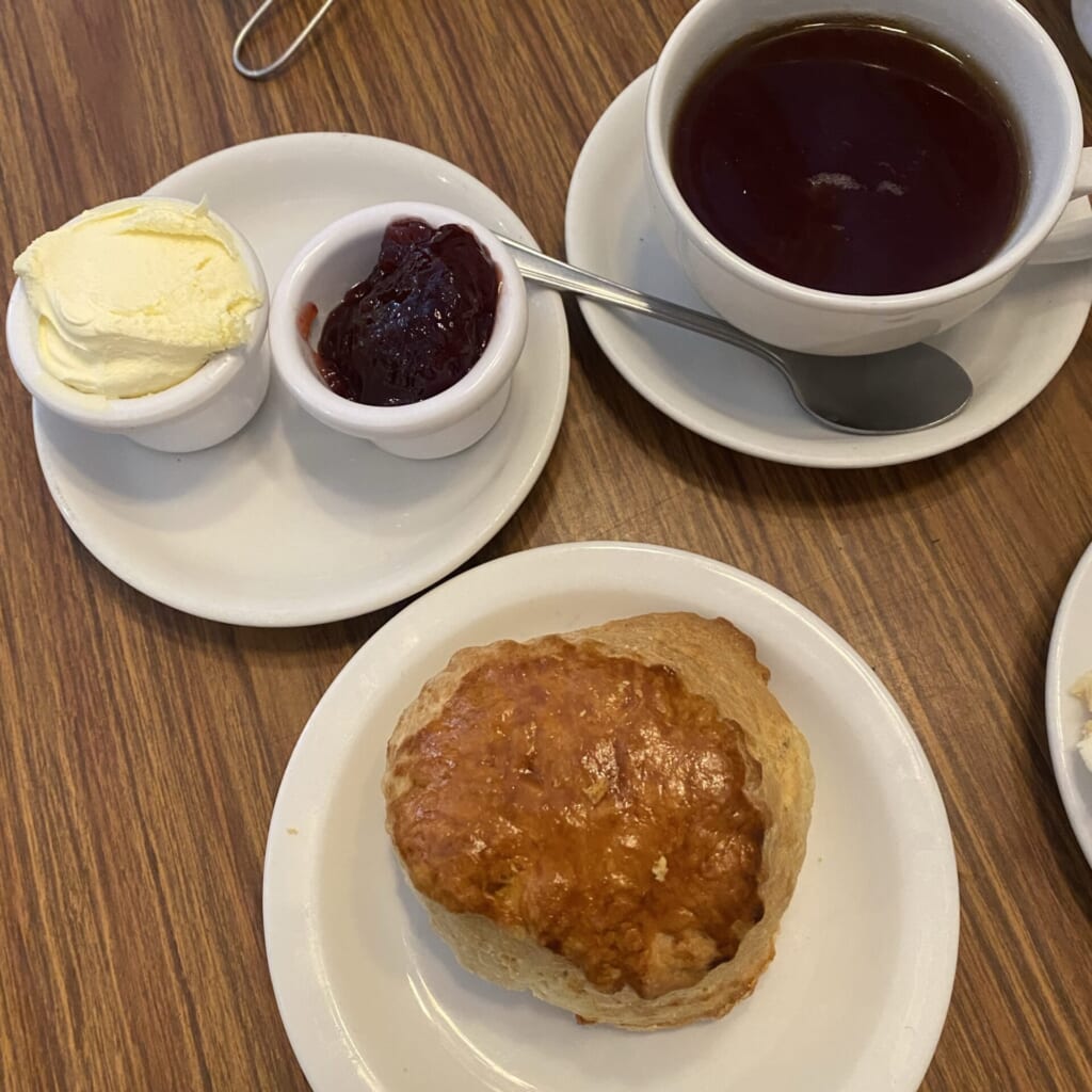 ということで、しっとり食感のスコーンにたっぷりのクロテッドクリームとジャムを付けて、紅茶と一緒にいただきました!最高!!!