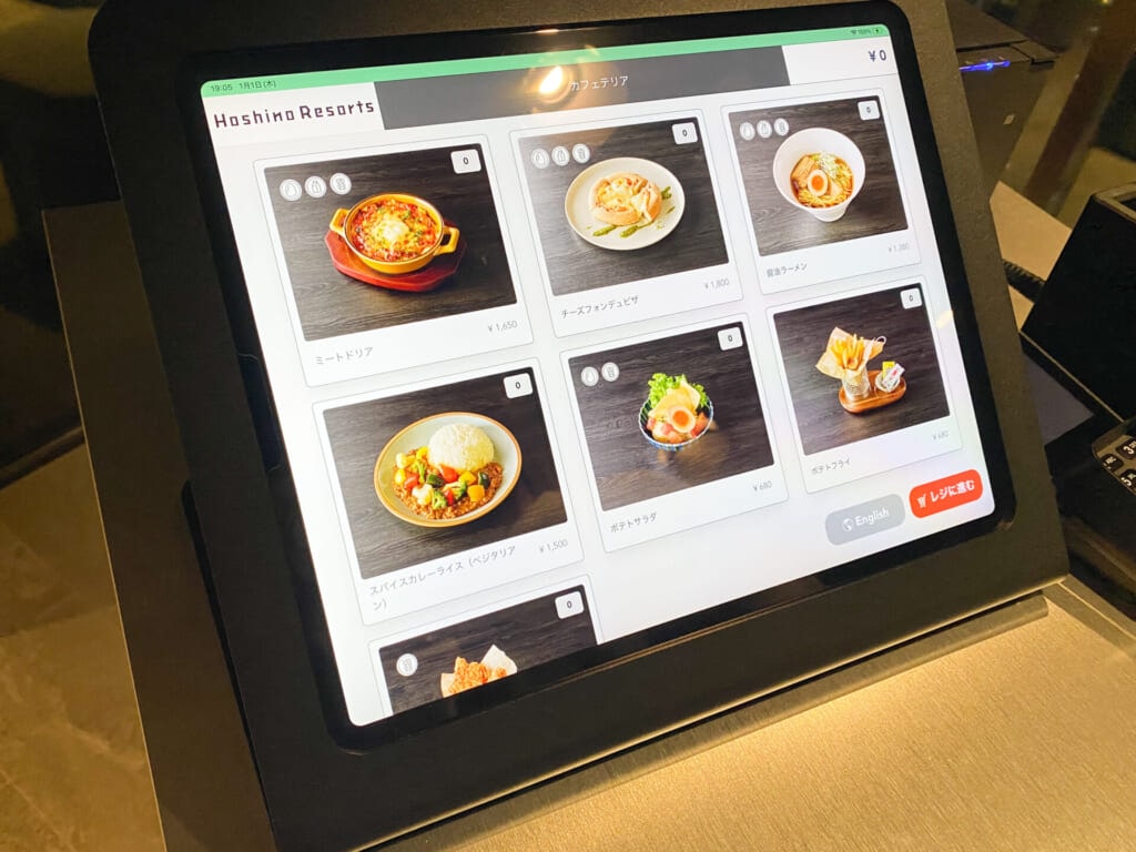 18:00から21:00の時間帯はアラカルトの夕食メニューをいただけます。ダイニング入り口でタッチパネルで選択、注文するシステム。写真付きのメニューの中からじっくり選べるのがありがたいです。