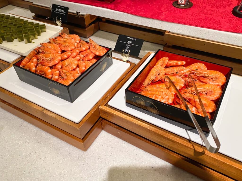 朝食は、普段のビュッフェメニューに加えて、おせち料理が用意されていて華やかでした!少量ずつ楽しめるのもありがたく、たくさんの種類を試すことができました。